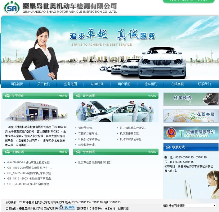 秦皇島世奧機動車檢測有限公司成立于2010年10月,位于開發區騰飛路3號(富士康南側300米),占地面積40余畝,設有四條安檢線(其中大型車檢測線兩條,小型車檢測線兩條),擁有50多名專業技術人員,采用國內先進的自動化檢測儀器設備和管理系統。并有多名交警駐站負責安檢及車管業務,是我市車管所管理下較大的機動車安檢技術機構。