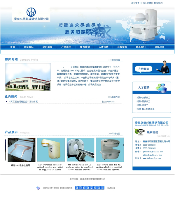 秦皇島德邦玻璃鋼有限公司成立于一九九三年,注冊(cè)資金 200 萬元人民幣,企業(yè)性質(zhì)為國(guó)內(nèi)合資,以生產(chǎn)醫(yī)療器械玻璃鋼外殼、玻璃鋼拉擠型材、電纜橋架、玻璃鋼門窗等為主營(yíng)產(chǎn)品。 公司自成立以來,一直致力于玻璃鋼產(chǎn)品的生產(chǎn)與研發(fā),通過不斷的探索與實(shí)踐,現(xiàn)已形成了一整套的專業(yè)生產(chǎn)技術(shù)及工藝管理系統(tǒng),在同行業(yè)中已有較高水準(zhǔn)。