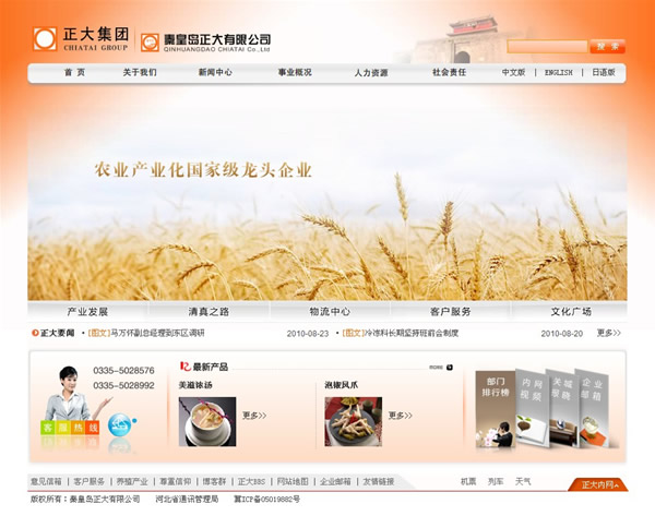 秦皇島正大有限公司是正大集團在華投資的核心企業,總投資為5億元人民幣,是集種雞飼養、孵化、飼料生產、肉雞飼養、屠宰、深加工為一體的現代化“一條龍”企業。形成的主要生產能力:父母代種雞場4座,飼養艾維茵種雞28萬套,飼料廠2座,對歐盟、日本出口加工注冊工廠一座,所有生產線引進荷蘭、日本、德國、加拿大,檢驗檢測設備引進日本、德國、以色列、瑞士,均屬國際先進水平。綜合實力位居國內同行業前列。