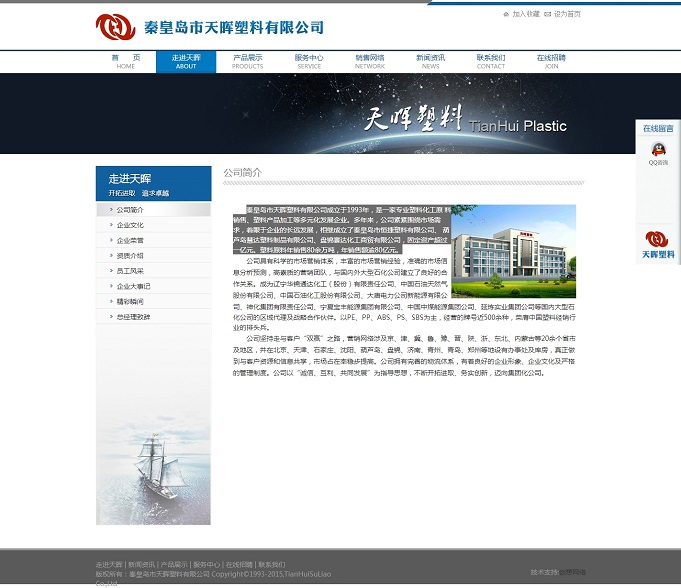 秦皇島市天暉塑料有限公司是一家專業(yè)塑料化工原 料銷售、塑料產(chǎn)品加工等多元化發(fā)展企業(yè)。多年來,公司緊緊圍繞市場(chǎng)需求,著眼于企業(yè)的長(zhǎng)遠(yuǎn)發(fā)展,相繼成立了秦皇島市恒捷塑料有限公司、 葫蘆島慧達(dá)塑料制品有限公司、盤錦寨達(dá)化工商貿(mào)有限公司,固定資產(chǎn)超過一億元。塑料原料年銷售80余萬噸,年銷售額逾80億元。