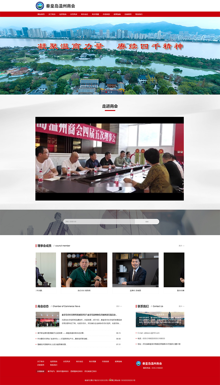 秦皇島溫州商會成立于2005年4月,是在秦皇島第一個注冊的異地商會,也是全國第126個異地溫州商會,商會是由溫州籍在秦皇島經營的工商業者和其他各界溫州籍人士自愿組成的,經市民政局核準登記的具有法人資格的非營利性社團組織,現有會員150余名,理事會成員28名。會員涉及工業電器、工程建筑、通訊、烘焙、服裝、餐飲等行業。商會秘書處為辦事機構,下設財務部、宣傳部、會員部、接待部、維權部、市場部。